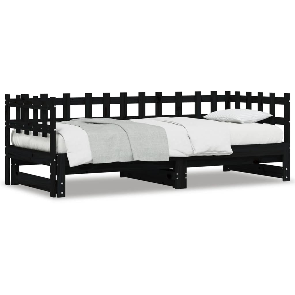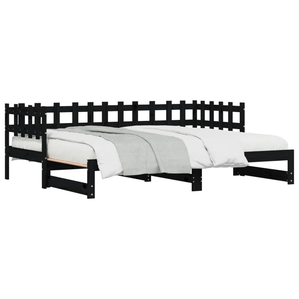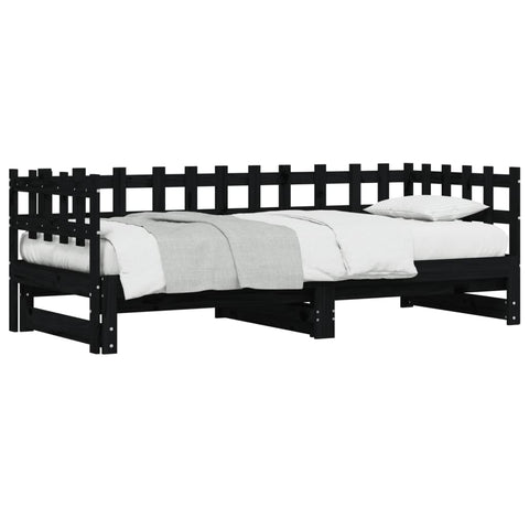 Pull-out Day Bed without Mattress Black 2x cm Solid Wood 840387