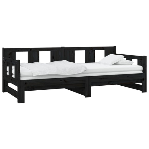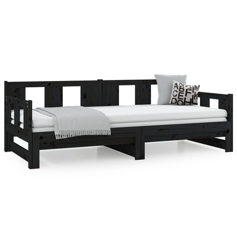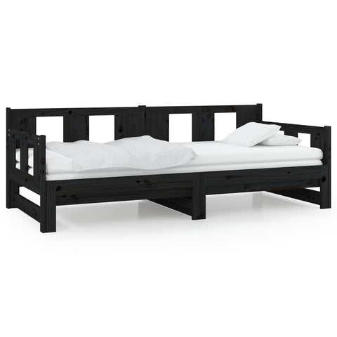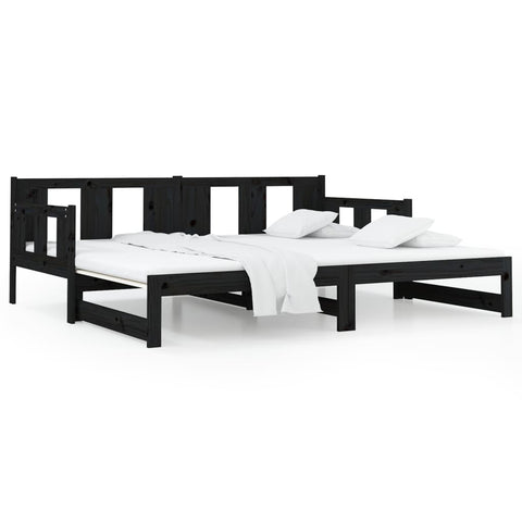 Pull-out Day Bed without Mattress Black Solid Wood Pine 2x cm 820296
