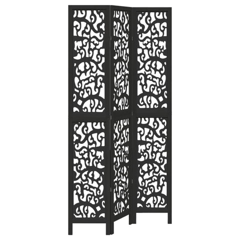Room Divider 3 Panels Black Solid Wood Paulownia 358752