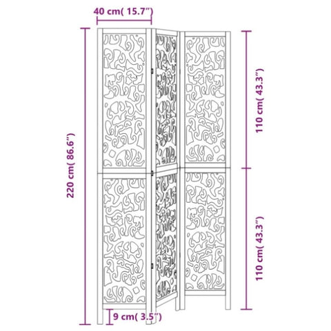 Bring elegance and an eye-catching decorative touch to your space with this charming room divider. Durable and easy to clean: The privacy screen is made from engineered wood, making it easy to clean and durable.Stable frame: The solid paulownia wood frame ensures sturdiness and stability. Solid paulownia wood is a beautiful natural material. Paulownia wood is highly resistant to bugs and rotting.Flexible and easy to fold: Each partition is connected by 3 metal hinges and the upper and lower panels are connected by hidden 2-in-1 hinges. So the room divider panel can be easily folded to some extent according to your needs to save space.Multipurpose: The room partition is great for creating private space in your bedroom, living room, office and other interiors. You can also place it in front of a window to block intense sunlight.Attractive looking: Featuring a delicate openwork looking, this folding room divider adds character and decoration to the space. Warning:Only for indoor use.