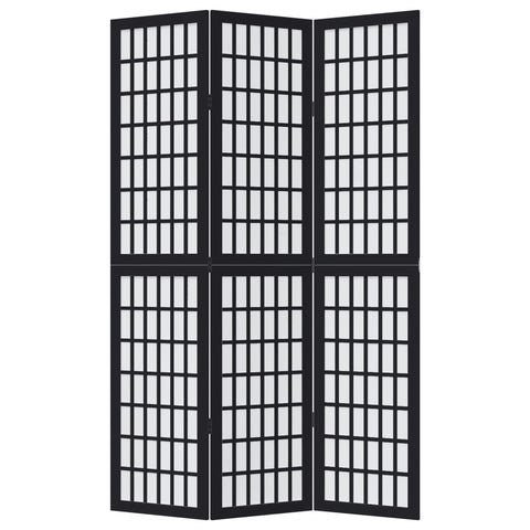 Room Divider 3 Panels Black Solid Wood Paulownia 358766
