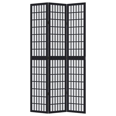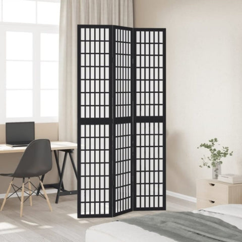 Room Divider 3 Panels Black Solid Wood Paulownia 358768