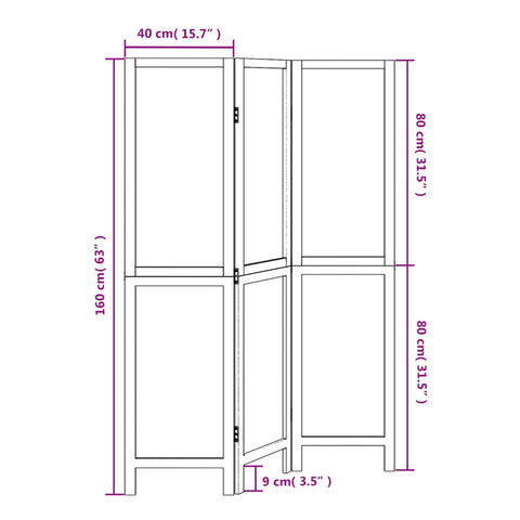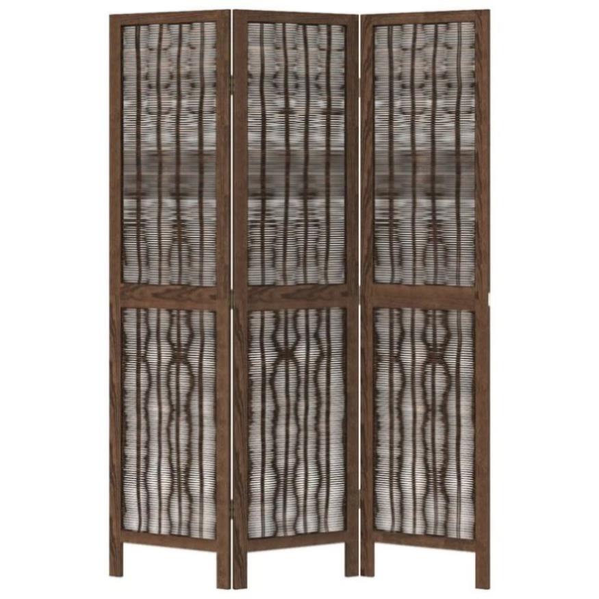 Room Divider 3 Panels Dark Brown Solid Wood Paulownia 358653