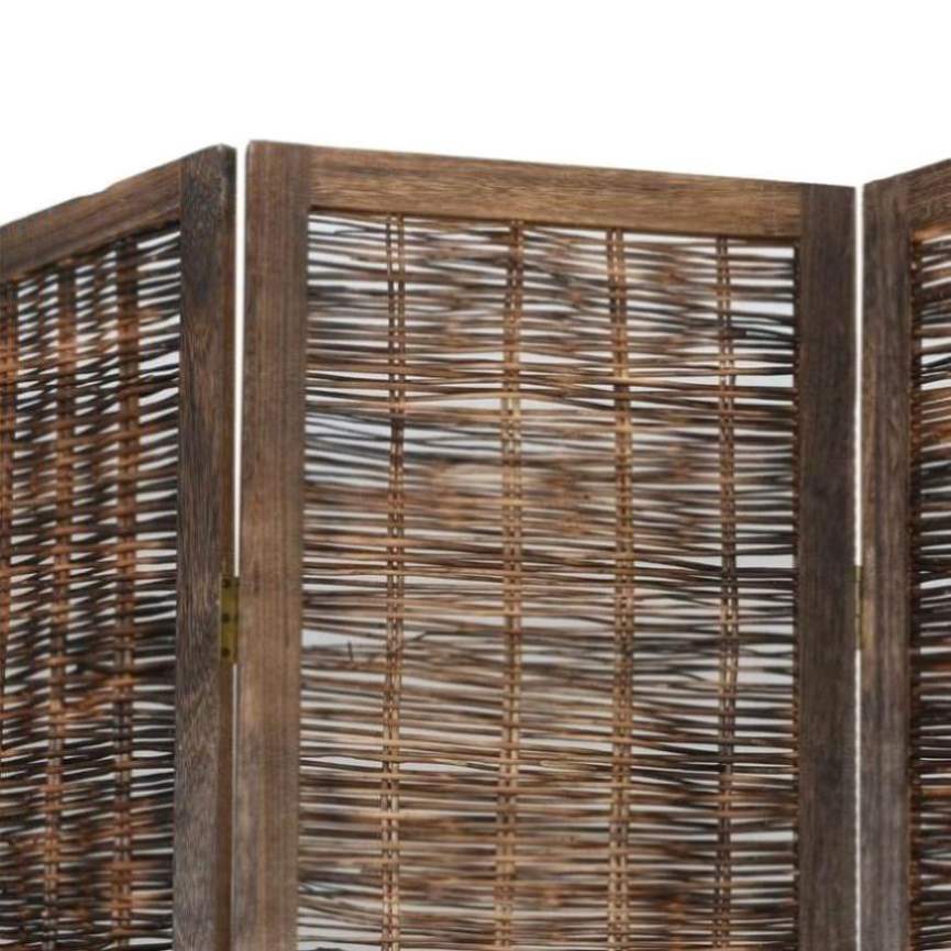 Bring elegance and an eye-catching decorative touch to your space with this charming room divider. Durable and easy to clean: The privacy screen is made from willow twig, making it easy to clean and durable.Stable frame: The solid paulownia wood frame ensures sturdiness and stability. Solid paulownia wood is a beautiful natural material. Paulownia wood is highly resistant to bugs and rotting.Flexible and easy to fold: Each partition is connected by 3 metal hinges and the upper and lower panels are connected by hidden 2-in-1 hinges. So the room divider panel can be easily folded to some extent according to your needs to save space.Multipurpose: The room partition is great for creating private space in your bedroom, living room, office and other interiors. You can also place it in front of a window to block intense sunlight.Burnt looking: Featuring a burnt look, this folding room divider adds character and decoration to the space. Warning:Only for indoor use.