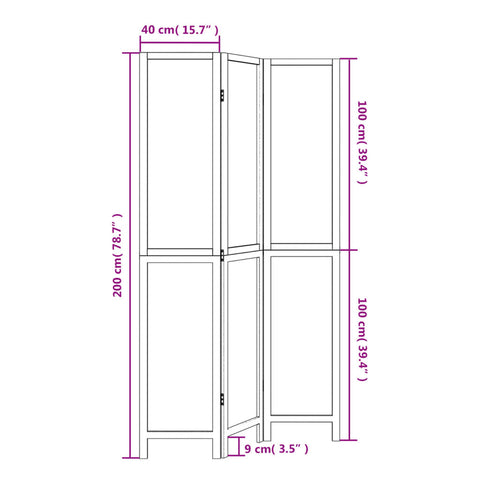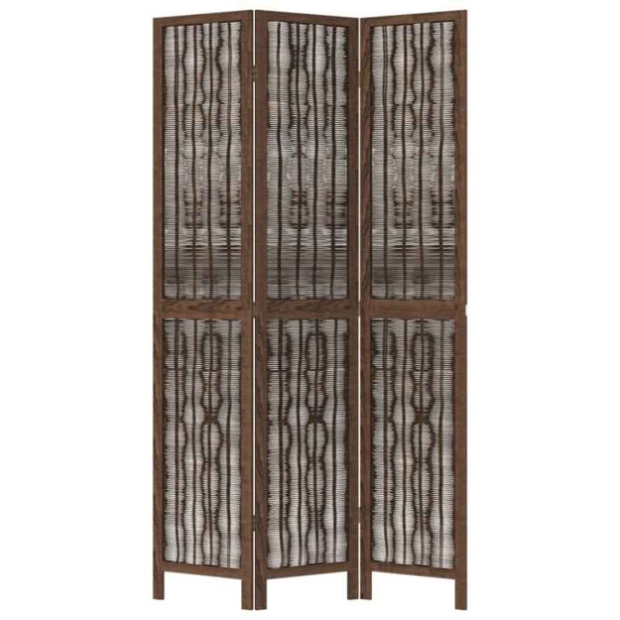 Room Divider 3 Panels Dark Brown Solid Wood Paulownia 358655