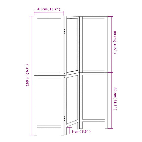 Room Divider 3 Panels White Solid Wood Paulownia 358669