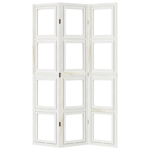 Room Divider 3 Panels White Solid Wood Paulownia 358686