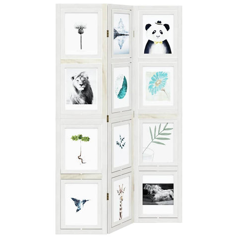 Bring elegance and an eye-catching decorative touch to your space with this charming room divider. Durable and easy to clean: The privacy screen is made from solid paulownia wood, making it easy to clean and durable. The solid paulownia wood frame ensures sturdiness and stability. Solid paulownia wood is a beautiful natural material. Paulownia wood is highly resistant to bugs and rotting.Flexible and easy to fold: Each partition is connected by 3 metal hinges and the upper and lower panels are connected by hidden 2-in-1 hinges. So the room divider panel can be easily folded to some extent according to your needs to save space.Attractive design: Each photo frame can be rotated vertically, allowing you to arrange your favourite photos in any position, becoming the highlight of the room.Multipurpose: The room partition is great for creating private space in your bedroom, living room, office and other interiors. You can also place it in front of a window to block intense sunlight. Warning:Only for indoor use. Good to know:Each swivelling frame features an open design and does not come with pre-set decorative pictures and glass. You can personalise it by inserting photos through the opening on the side of the frame to create a unique, customised look.