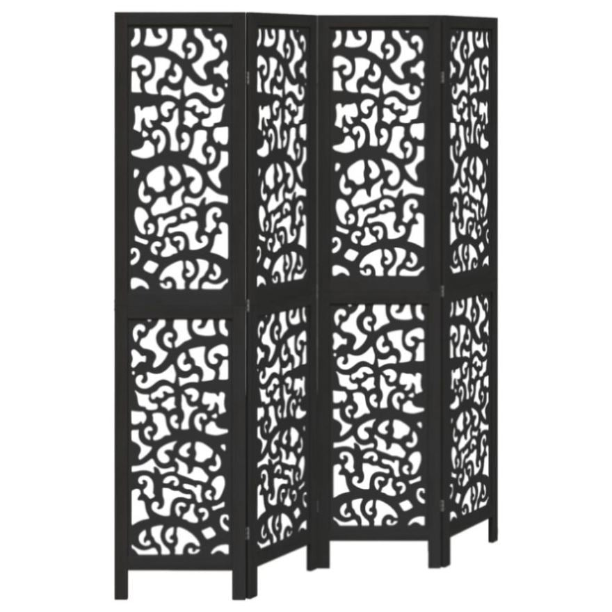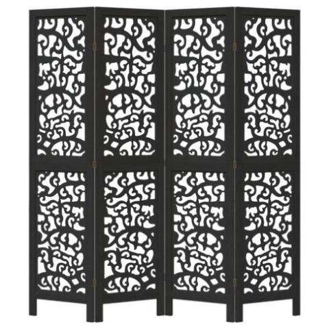 Room Divider 4 Panels Black Solid Wood Paulownia 358754