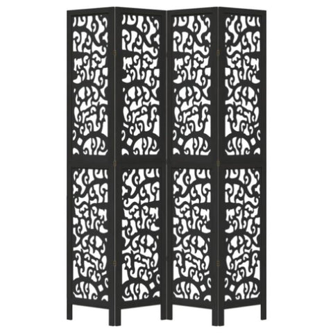 Room Divider 4 Panels Black Solid Wood Paulownia 358756