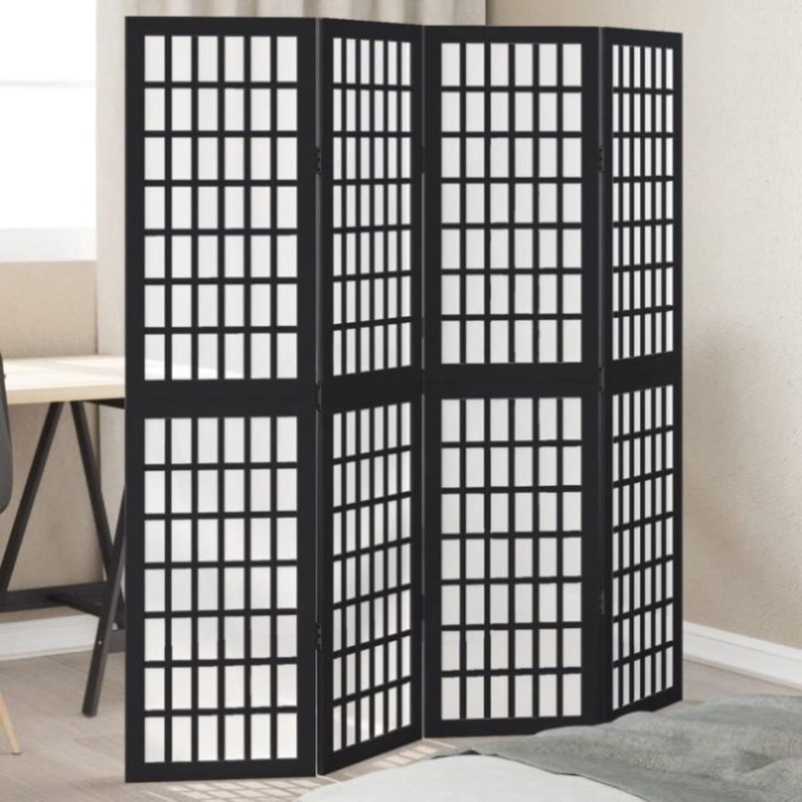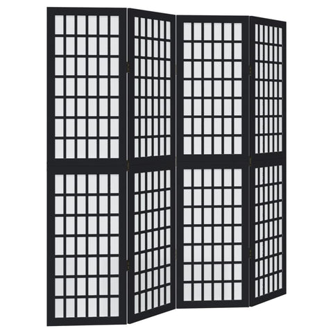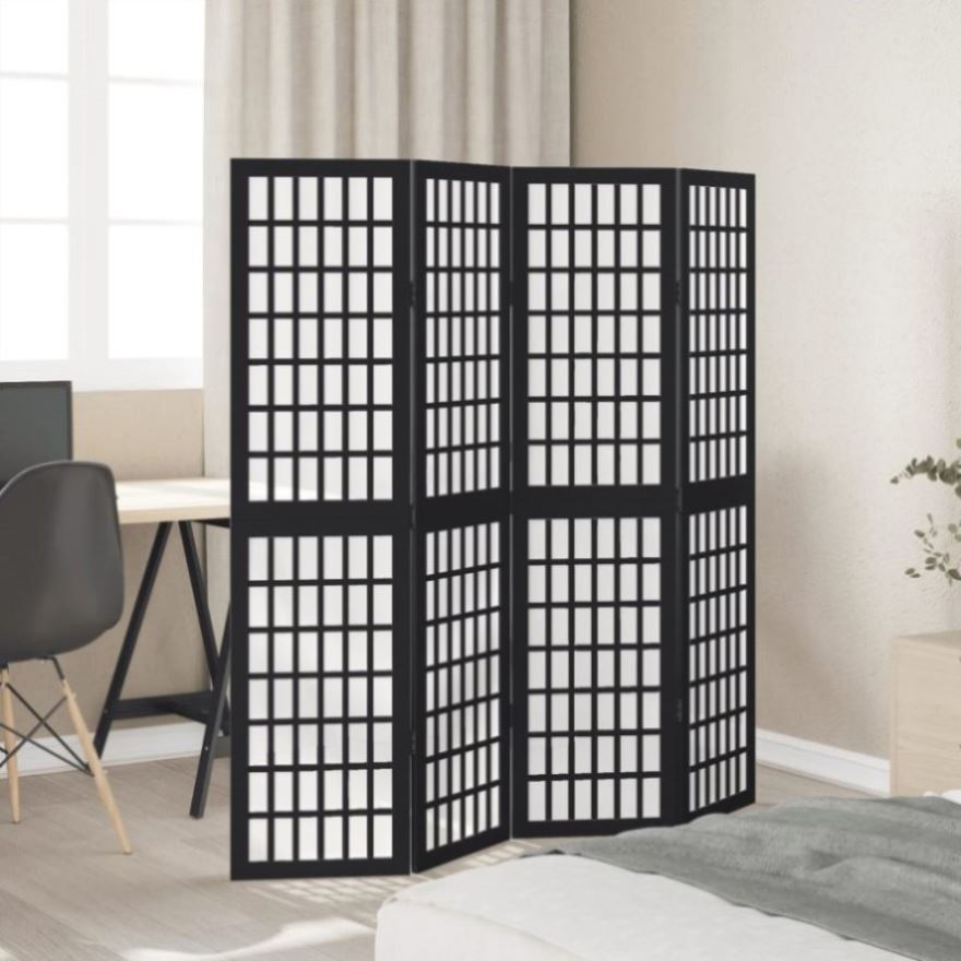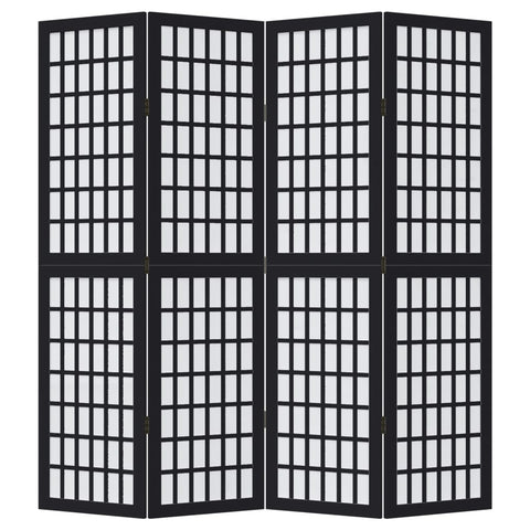 Room Divider 4 Panels Black Solid Wood Paulownia 358769