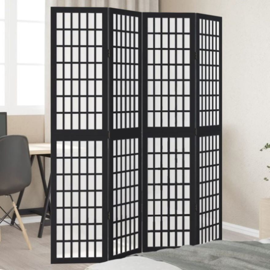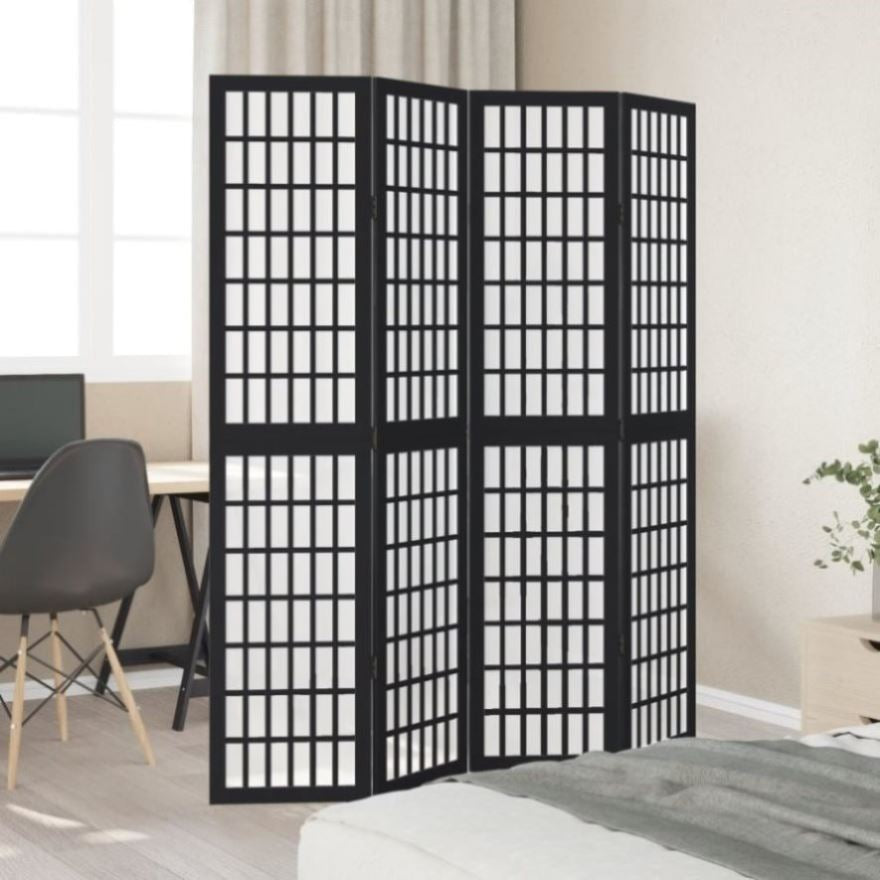 Room Divider 4 Panels Black Solid Wood Paulownia 358770