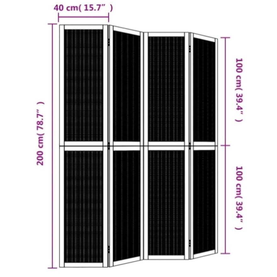 Room Divider 4 Panels Brown Solid Wood Paulownia 358819