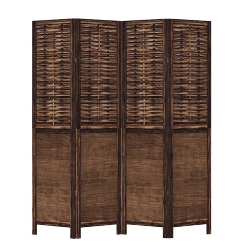 Bring elegance and an eye-catching decorative touch to your space with this charming room divider. Durable and easy to clean: The privacy screen is woven from natural bamboo strips and engineered wood, making it easy to clean and durable.Stable frame: The solid paulownia wood frame ensures sturdiness and stability. Solid paulownia wood is a beautiful natural material. Paulownia wood is highly resistant to bugs and rotting.Flexible and easy to fold: Each partition is connected by 3 metal hinges and the upper and lower panels are connected by hidden 2-in-1 hinges. So the room divider panel can be easily folded to some extent according to your needs to save space.Multipurpose: The room partition is great for creating private space in your bedroom, living room, office and other interiors. You can also place it in front of a window to block intense sunlight.Burnt looking: Featuring a burnt look, this folding room divider adds character and decoration to the space. Warning:Only for indoor use.