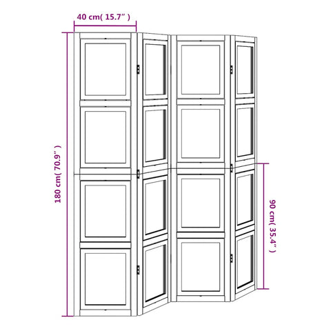 Room Divider 4 Panels White Solid Wood Paulownia 358690