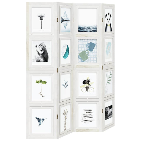 Bring elegance and an eye-catching decorative touch to your space with this charming room divider. Durable and easy to clean: The privacy screen is made from solid paulownia wood, making it easy to clean and durable. The solid paulownia wood frame ensures sturdiness and stability. Solid paulownia wood is a beautiful natural material. Paulownia wood is highly resistant to bugs and rotting.Flexible and easy to fold: Each partition is connected by 3 metal hinges and the upper and lower panels are connected by hidden 2-in-1 hinges. So the room divider panel can be easily folded to some extent according to your needs to save space.Attractive design: Each photo frame can be rotated vertically, allowing you to arrange your favourite photos in any position, becoming the highlight of the room.Multipurpose: The room partition is great for creating private space in your bedroom, living room, office and other interiors. You can also place it in front of a window to block intense sunlight. Warning:Only for indoor use. Good to know:Each swivelling frame features an open design and does not come with pre-set decorative pictures and glass. You can personalise it by inserting photos through the opening on the side of the frame to create a unique, customised look.