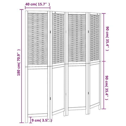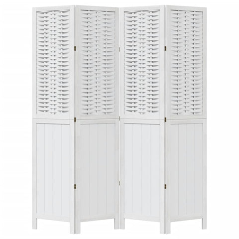 Room Divider 4 Panels White Solid Wood Paulownia 358722