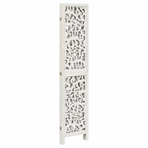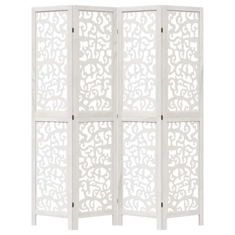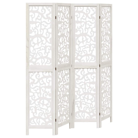 Room Divider 4 Panels White Solid Wood Paulownia 358738