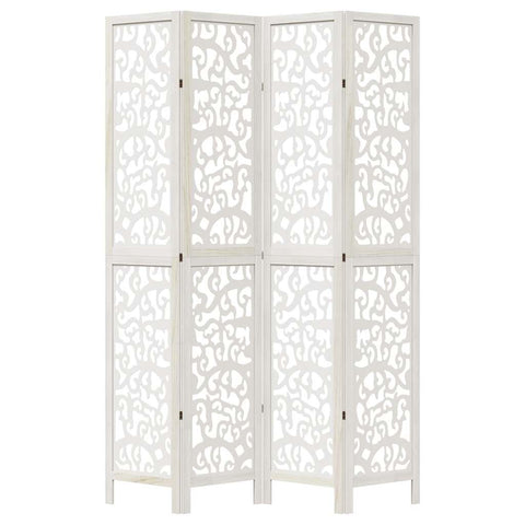 Room Divider 4 Panels White Solid Wood Paulownia 358740