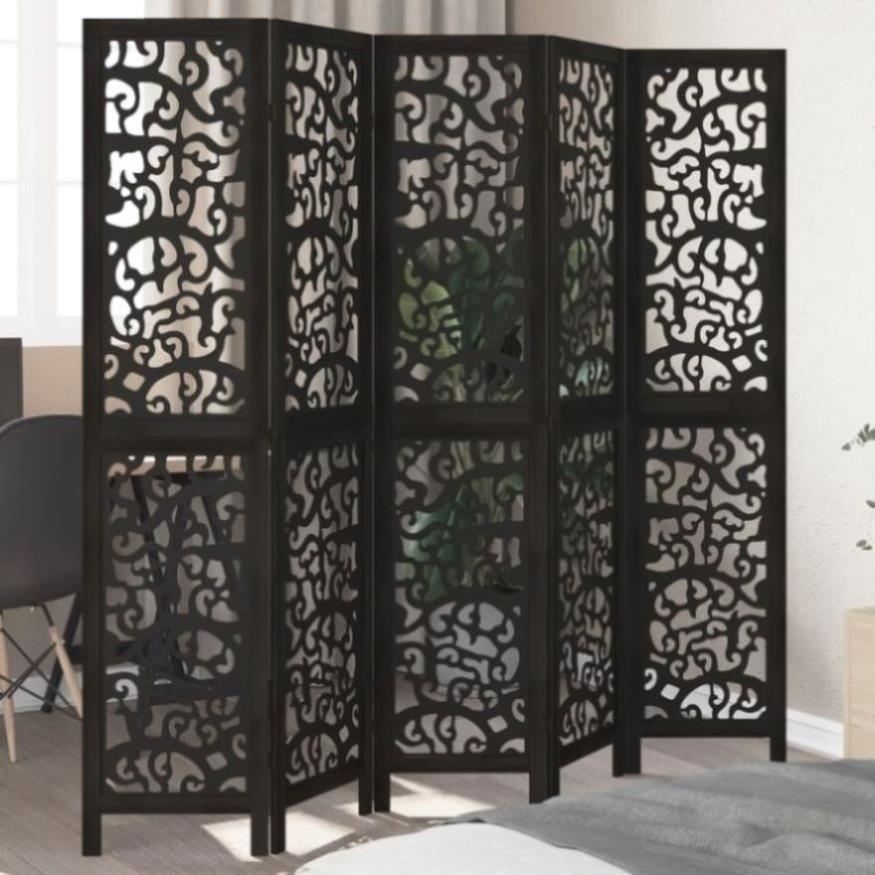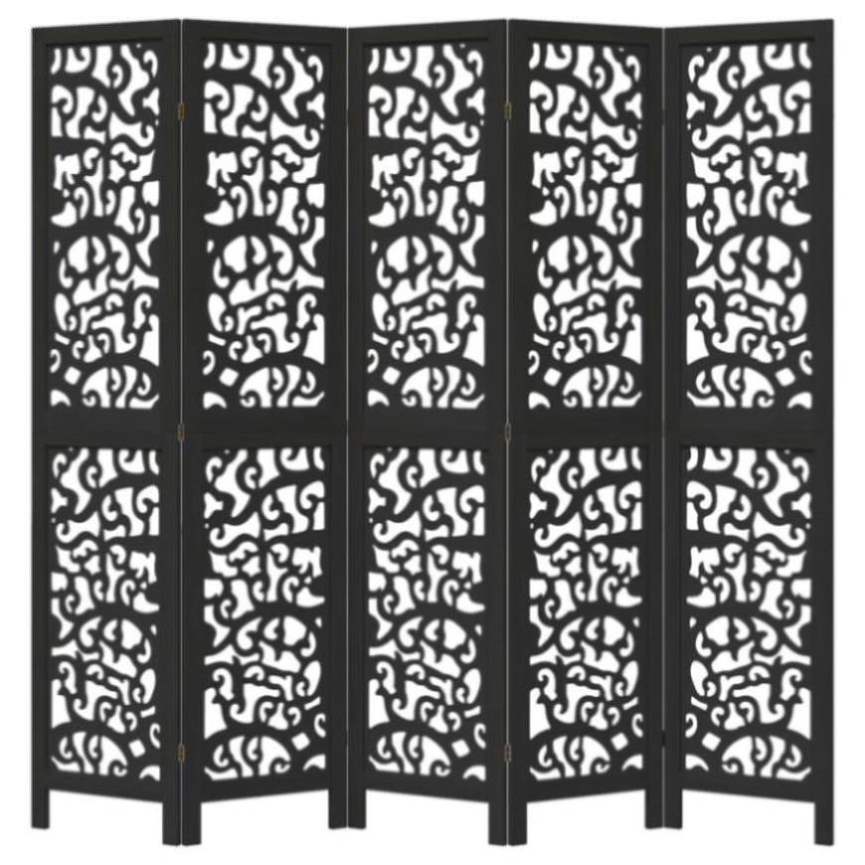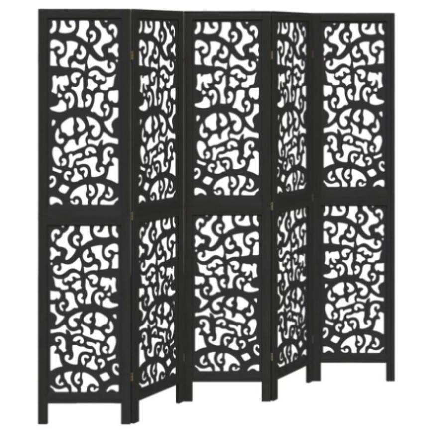 Room Divider 5 Panels Black Solid Wood Paulownia 358758