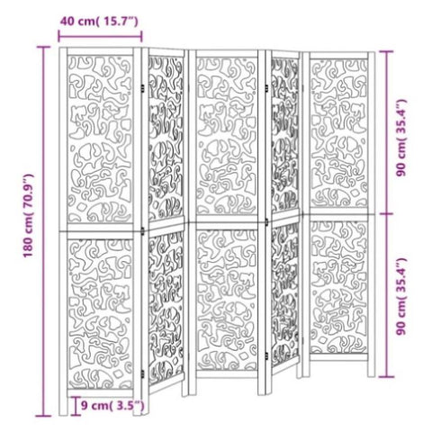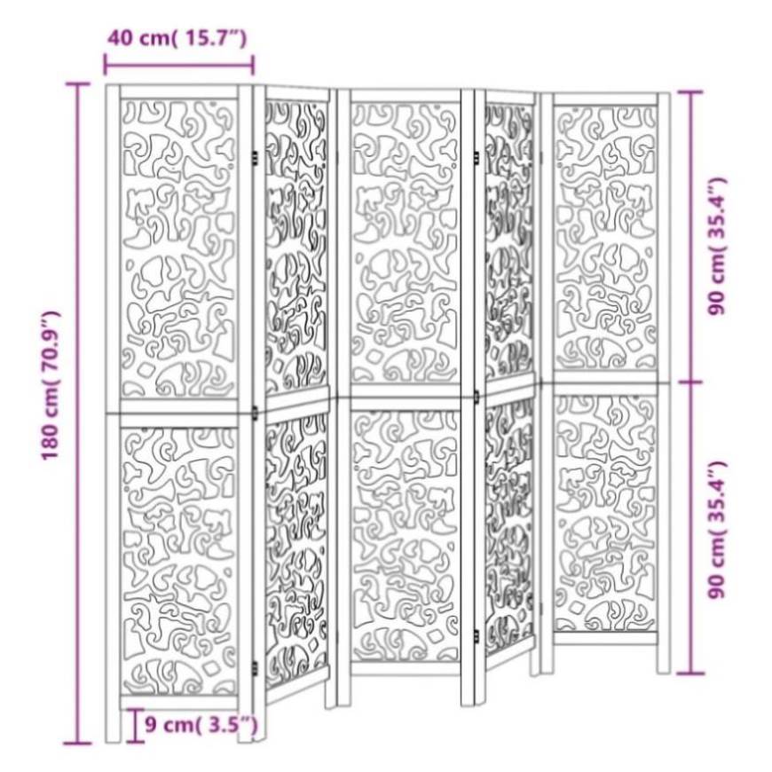 Bring elegance and an eye-catching decorative touch to your space with this charming room divider. Durable and easy to clean: The privacy screen is made from engineered wood, making it easy to clean and durable.Stable frame: The solid paulownia wood frame ensures sturdiness and stability. Solid paulownia wood is a beautiful natural material. Paulownia wood is highly resistant to bugs and rotting.Flexible and easy to fold: Each partition is connected by 3 metal hinges and the upper and lower panels are connected by hidden 2-in-1 hinges. So the room divider panel can be easily folded to some extent according to your needs to save space.Multipurpose: The room partition is great for creating private space in your bedroom, living room, office and other interiors. You can also place it in front of a window to block intense sunlight.Attractive looking: Featuring a delicate openwork looking, this folding room divider adds character and decoration to the space. Warning:Only for indoor use.