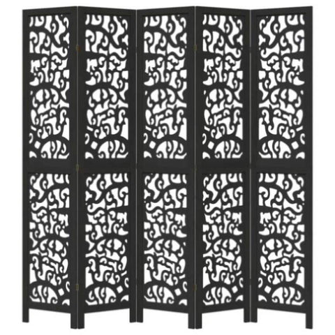Room Divider 5 Panels Black Solid Wood Paulownia 358759