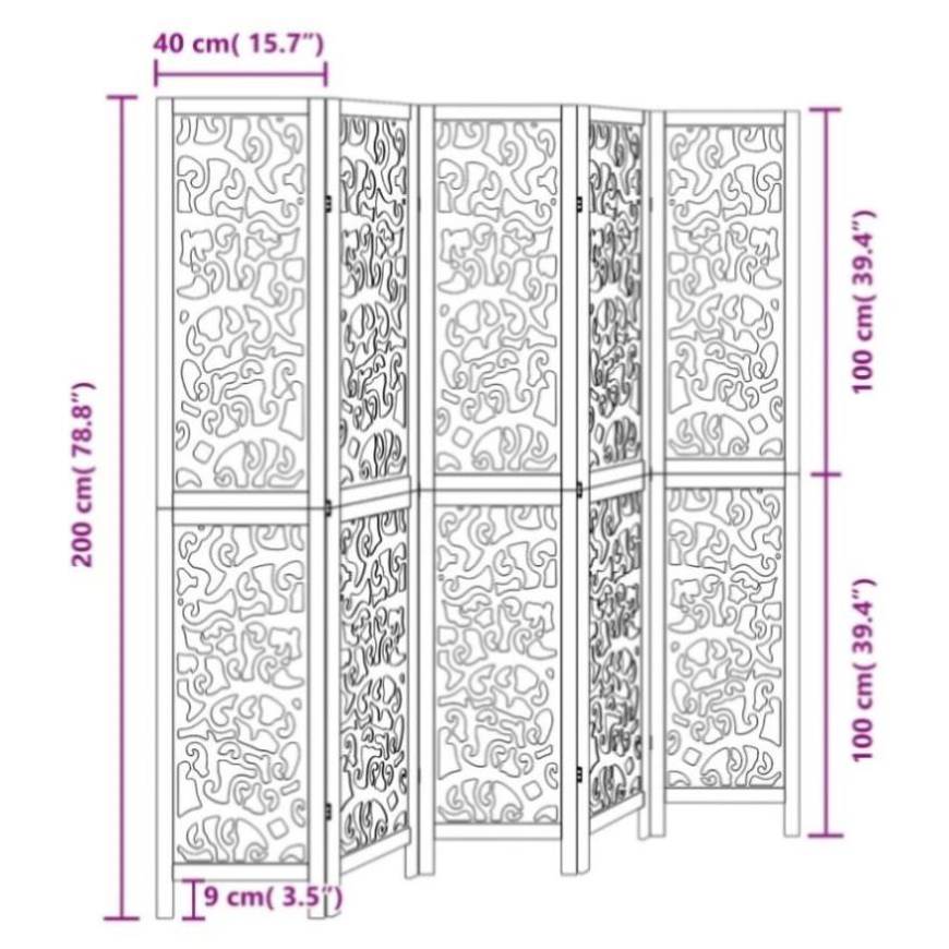 Bring elegance and an eye-catching decorative touch to your space with this charming room divider. Durable and easy to clean: The privacy screen is made from engineered wood, making it easy to clean and durable.Stable frame: The solid paulownia wood frame ensures sturdiness and stability. Solid paulownia wood is a beautiful natural material. Paulownia wood is highly resistant to bugs and rotting.Flexible and easy to fold: Each partition is connected by 3 metal hinges and the upper and lower panels are connected by hidden 2-in-1 hinges. So the room divider panel can be easily folded to some extent according to your needs to save space.Multipurpose: The room partition is great for creating private space in your bedroom, living room, office and other interiors. You can also place it in front of a window to block intense sunlight.Attractive looking: Featuring a delicate openwork looking, this folding room divider adds character and decoration to the space. Warning:Only for indoor use.