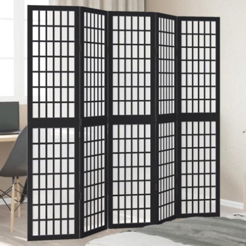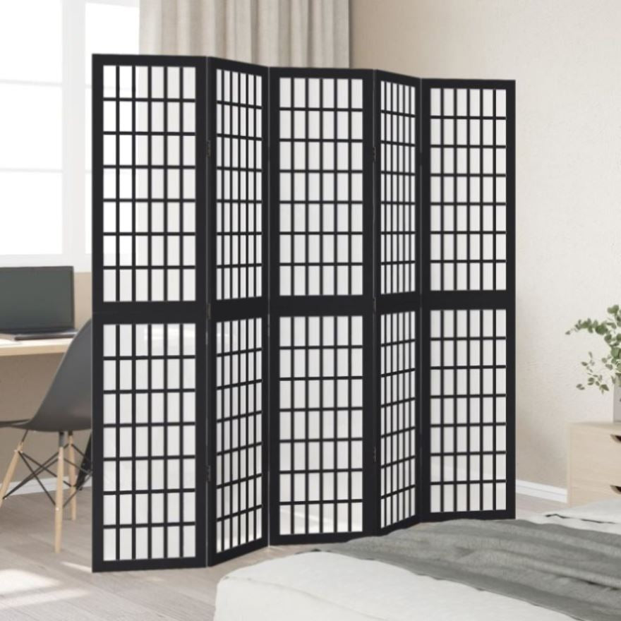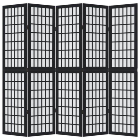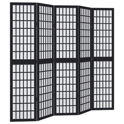Room Divider 5 Panels Black Solid Wood Paulownia 358774