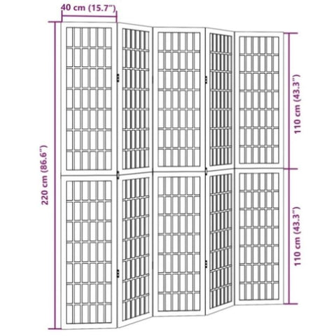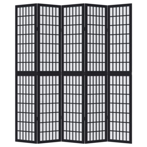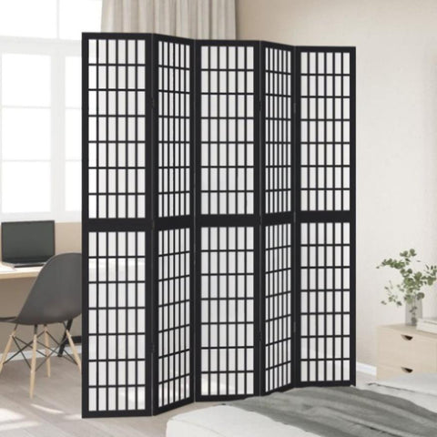 Room Divider 5 Panels Black Solid Wood Paulownia 358776