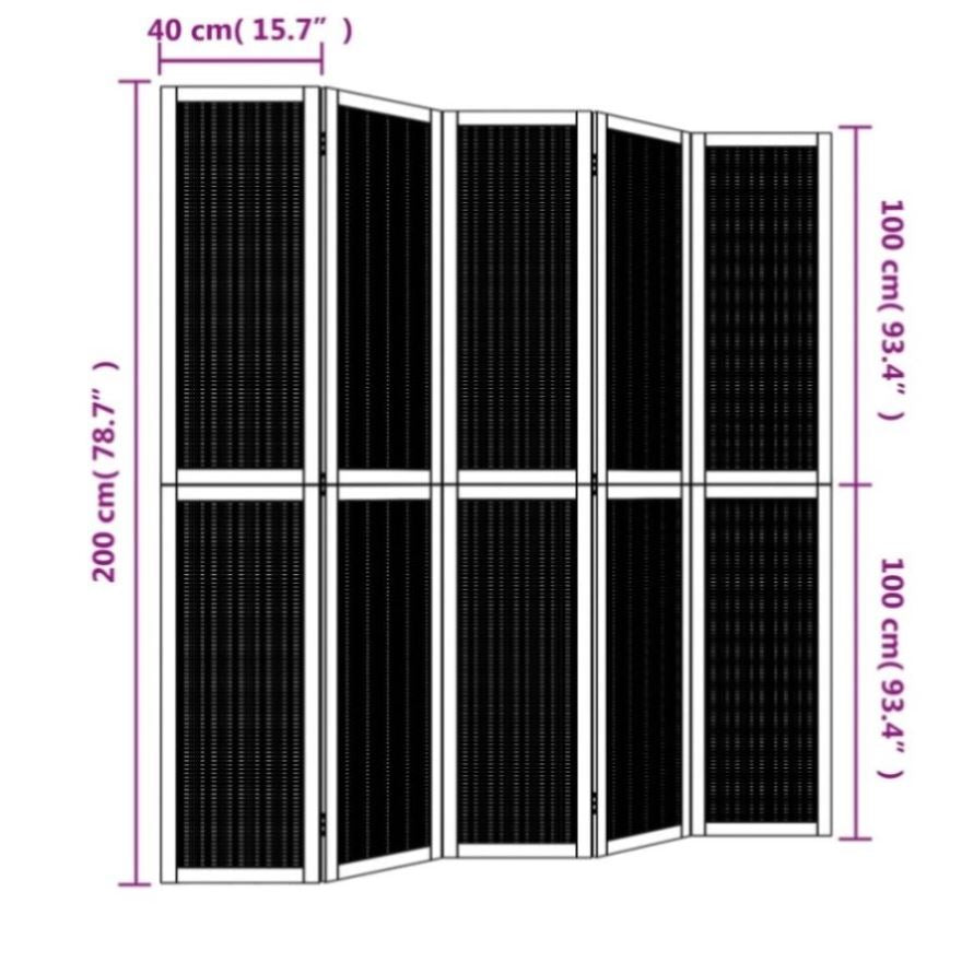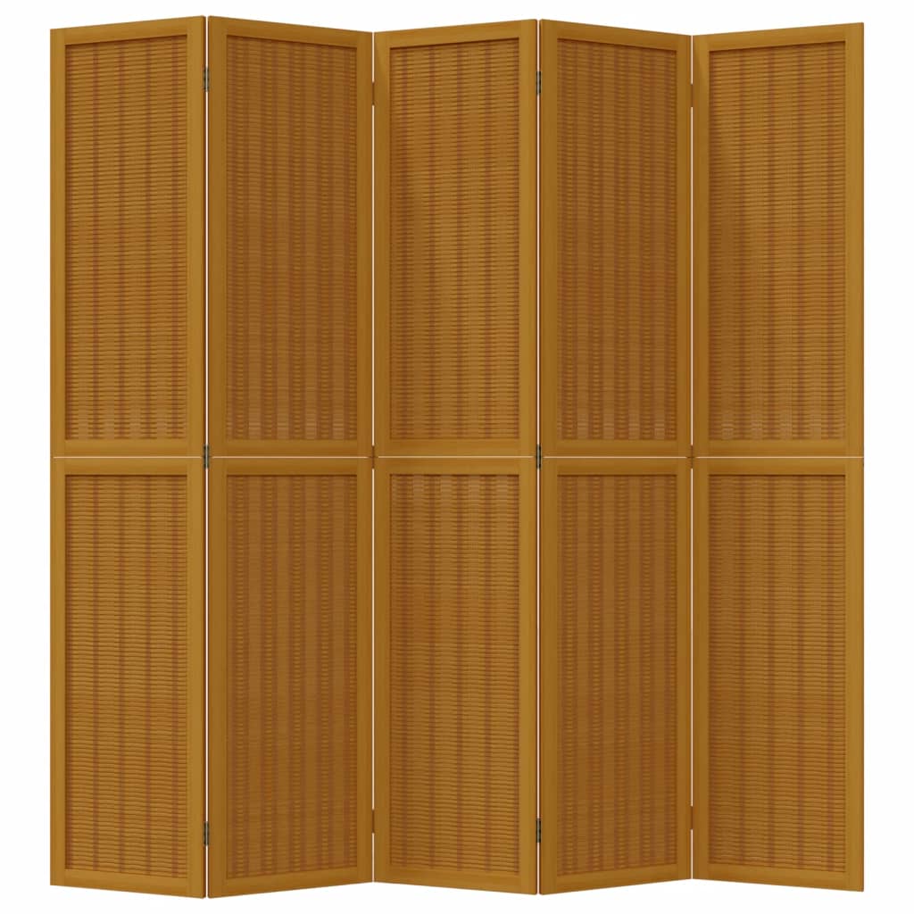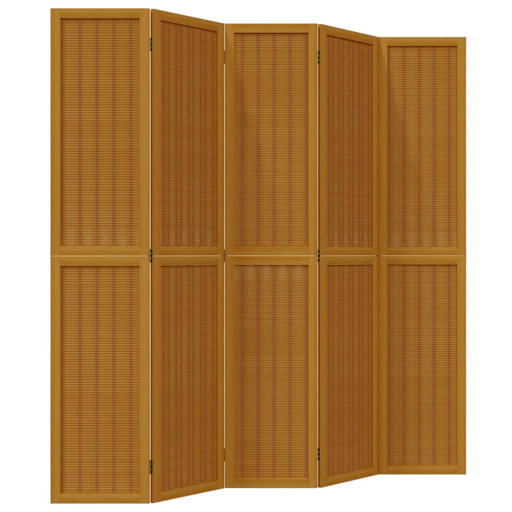 Room Divider 5 Panels Brown Solid Wood Paulownia 358823