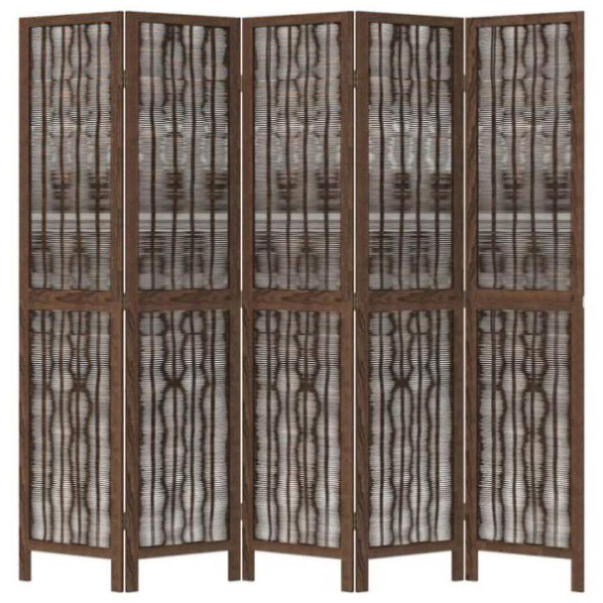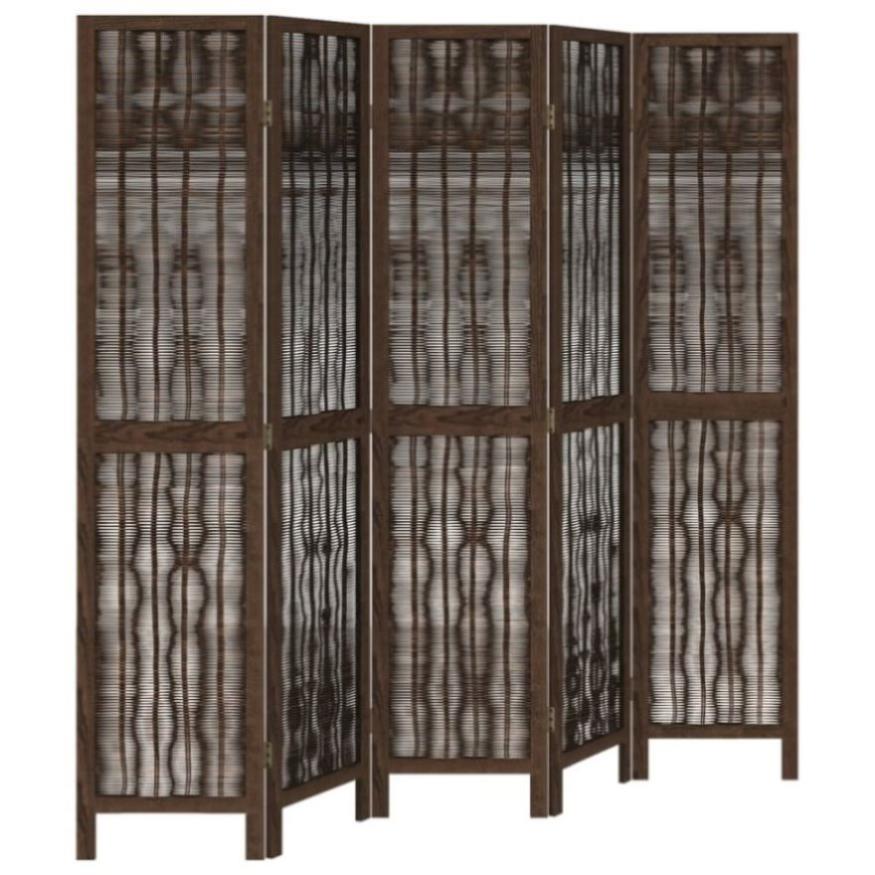 Room Divider 5 Panels Dark Brown Solid Wood Paulownia 358662