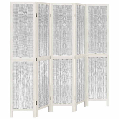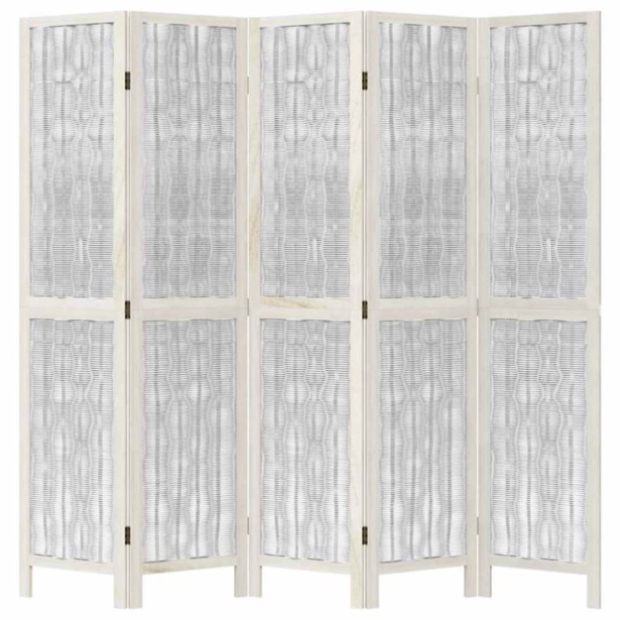 Room Divider 5 Panels White Solid Wood Paulownia 358678