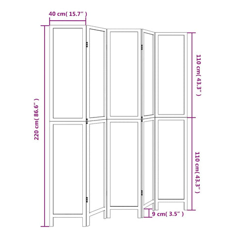 Room Divider 5 Panels White Solid Wood Paulownia 358680