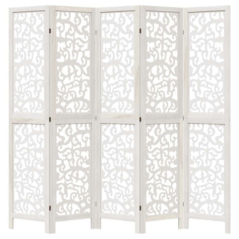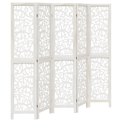 Room Divider 5 Panels White Solid Wood Paulownia 358742