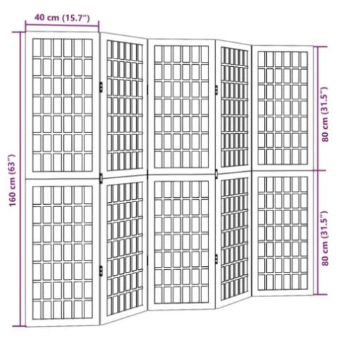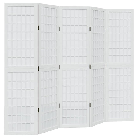 Room Divider 5 Panels White Solid Wood Paulownia 358789