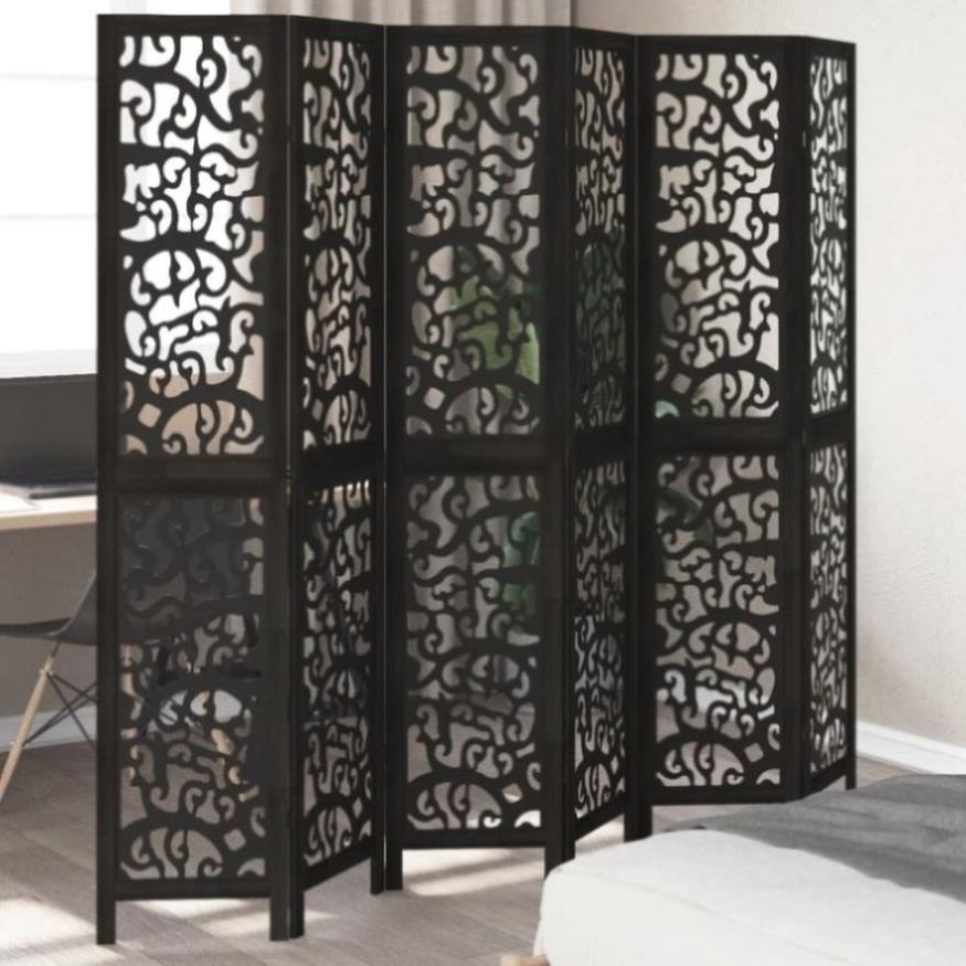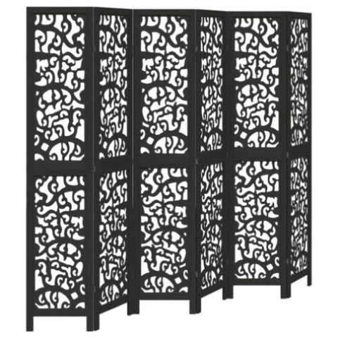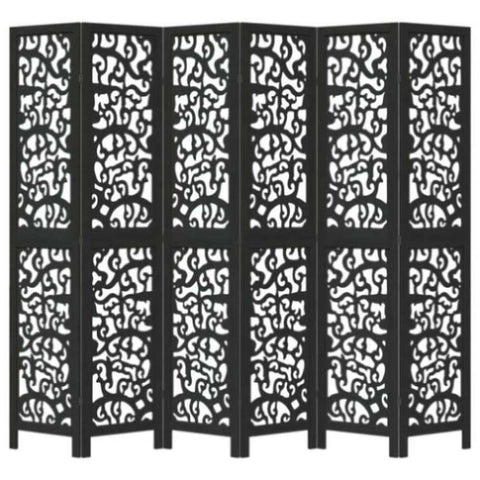 Room Divider 6 Panels Black Solid Wood Paulownia 358763