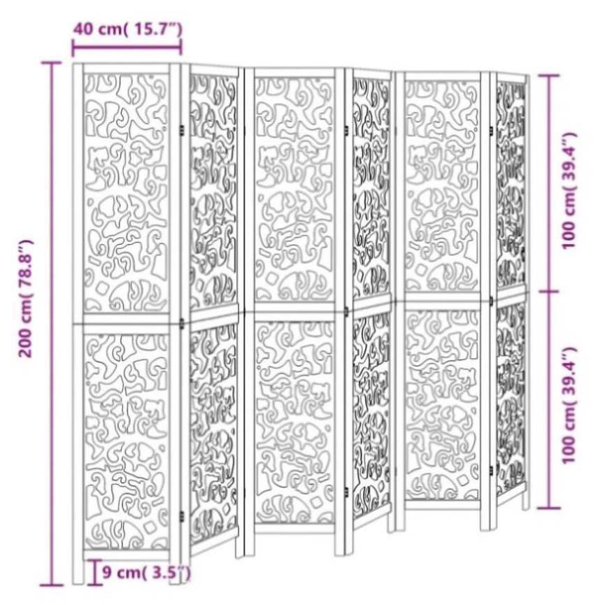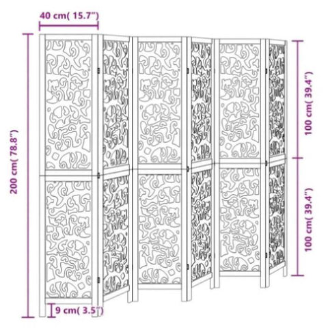 Bring elegance and an eye-catching decorative touch to your space with this charming room divider. Durable and easy to clean: The privacy screen is made from engineered wood, making it easy to clean and durable.Stable frame: The solid paulownia wood frame ensures sturdiness and stability. Solid paulownia wood is a beautiful natural material. Paulownia wood is highly resistant to bugs and rotting.Flexible and easy to fold: Each partition is connected by 3 metal hinges and the upper and lower panels are connected by hidden 2-in-1 hinges. So the room divider panel can be easily folded to some extent according to your needs to save space.Multipurpose: The room partition is great for creating private space in your bedroom, living room, office and other interiors. You can also place it in front of a window to block intense sunlight.Attractive looking: Featuring a delicate openwork looking, this folding room divider adds character and decoration to the space. Warning:Only for indoor use.