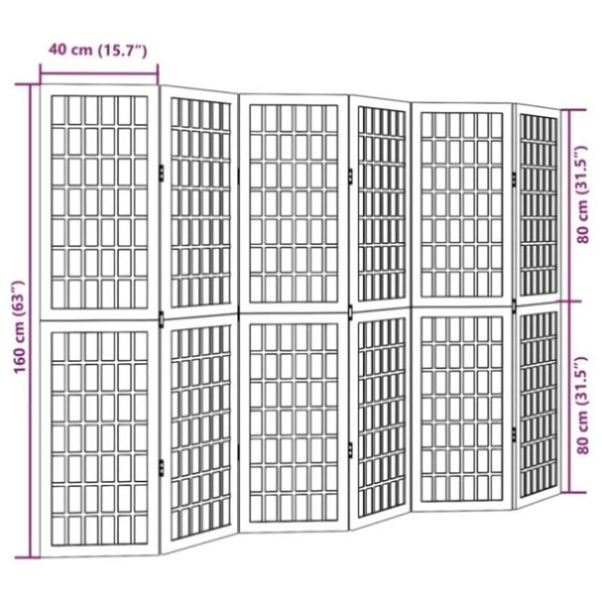 Bring elegance and an eye-catching decorative touch to your space with this charming room divider. Durable and easy to clean: The privacy screen is made from engineered wood, making it easy to clean and durable.Stable frame: The solid paulownia wood frame ensures sturdiness and stability. Solid paulownia wood is a beautiful natural material. Paulownia wood is highly resistant to bugs and rotting.Flexible and easy to fold: Each partition is connected by 3 metal hinges and the upper and lower panels are connected by hidden 2-in-1 hinges. So the room divider panel can be easily folded to some extent according to your needs to save space.Multipurpose: The room partition is great for creating private space in your bedroom, living room, office and other interiors. You can also place it in front of a window to block intense sunlight.Attractive looking: Featuring a classic symmetrical grid look, this folding room divider adds character and decoration to the space. Warning:Only for indoor use.