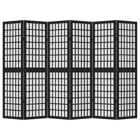 Room Divider 6 Panels Black Solid Wood Paulownia 358777
