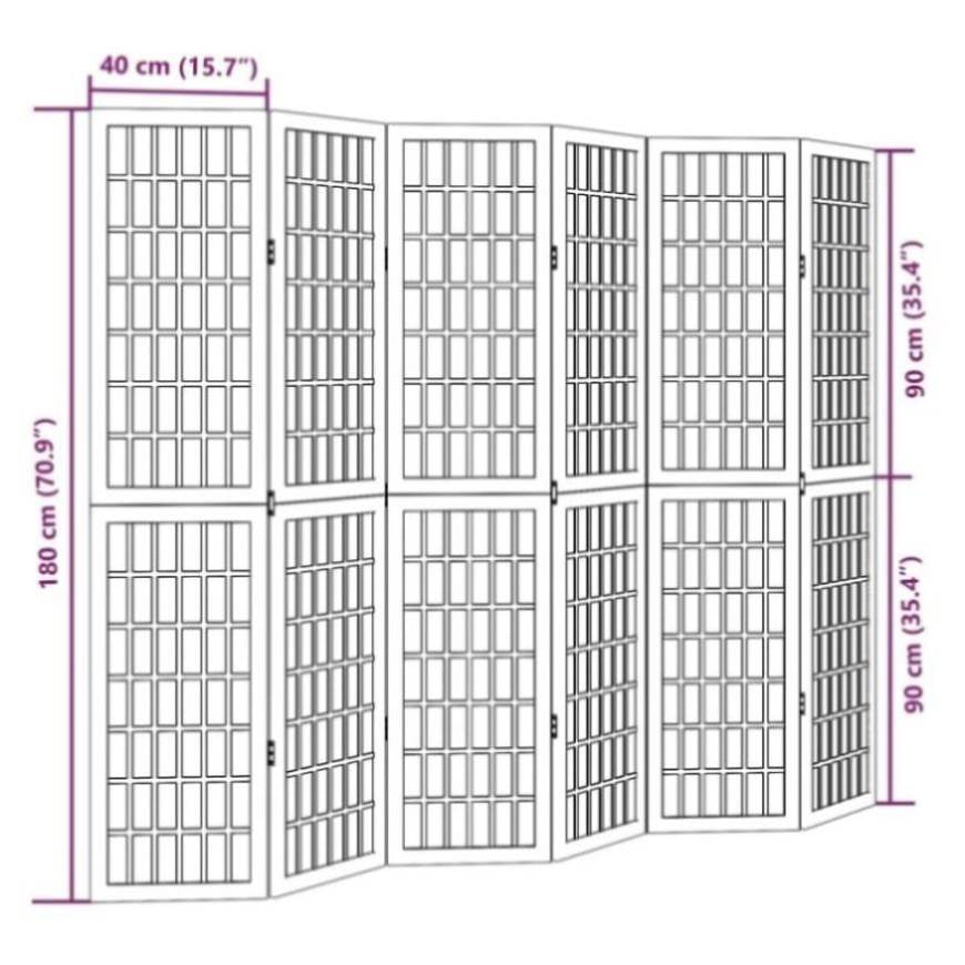 Bring elegance and an eye-catching decorative touch to your space with this charming room divider. Durable and easy to clean: The privacy screen is made from engineered wood, making it easy to clean and durable.Stable frame: The solid paulownia wood frame ensures sturdiness and stability. Solid paulownia wood is a beautiful natural material. Paulownia wood is highly resistant to bugs and rotting.Flexible and easy to fold: Each partition is connected by 3 metal hinges and the upper and lower panels are connected by hidden 2-in-1 hinges. So the room divider panel can be easily folded to some extent according to your needs to save space.Multipurpose: The room partition is great for creating private space in your bedroom, living room, office and other interiors. You can also place it in front of a window to block intense sunlight.Attractive looking: Featuring a classic symmetrical grid look, this folding room divider adds character and decoration to the space. Warning:Only for indoor use.