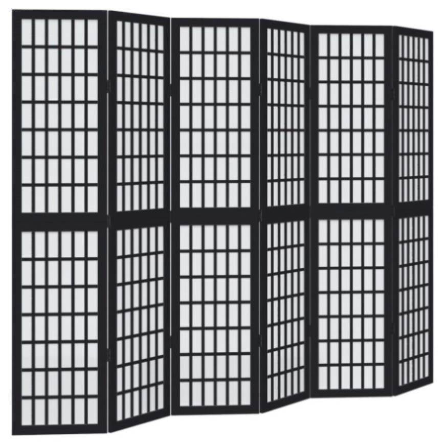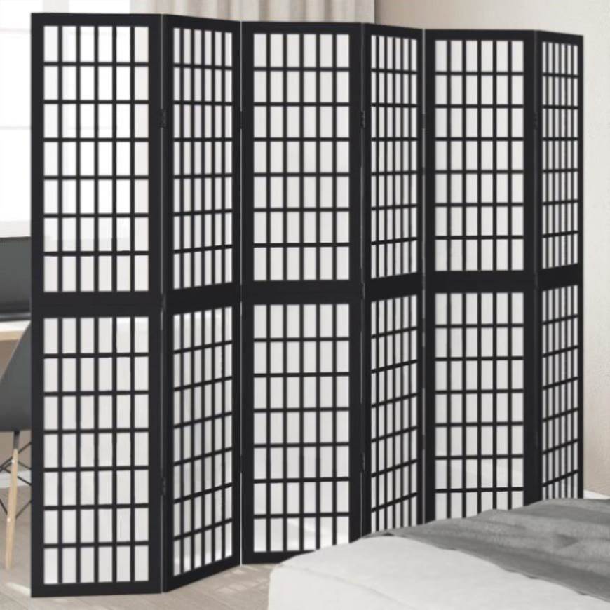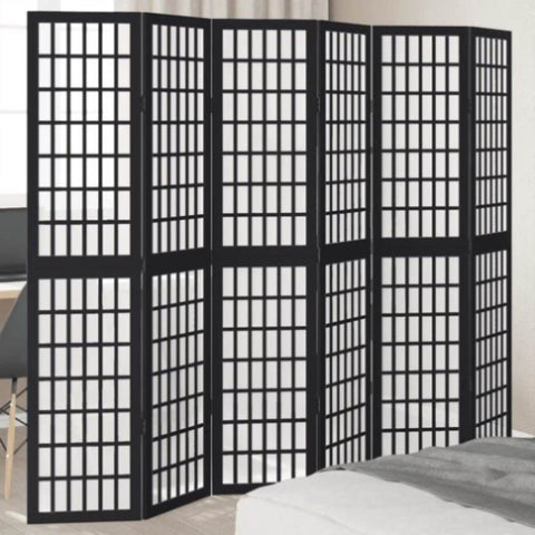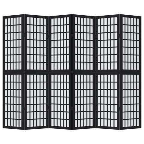 Room Divider 6 Panels Black Solid Wood Paulownia 358778