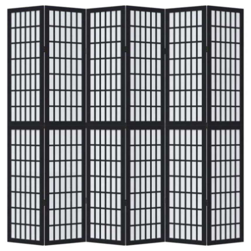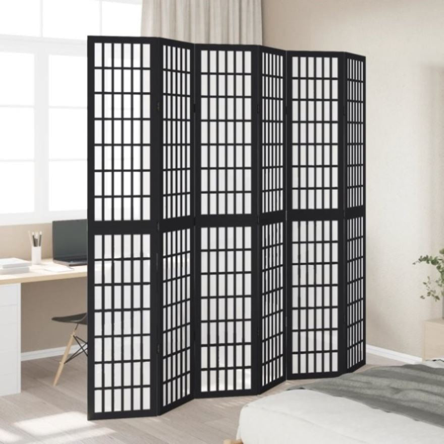 Room Divider 6 Panels Black Solid Wood Paulownia 358780