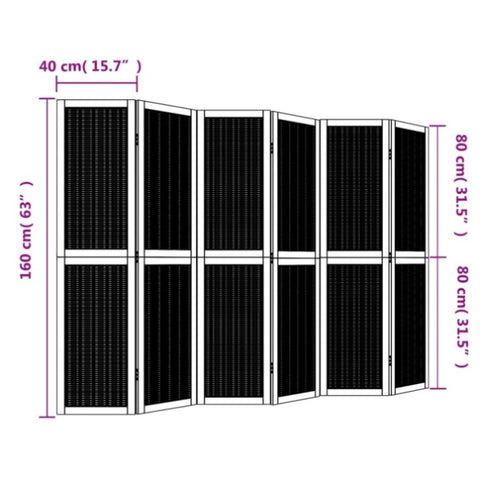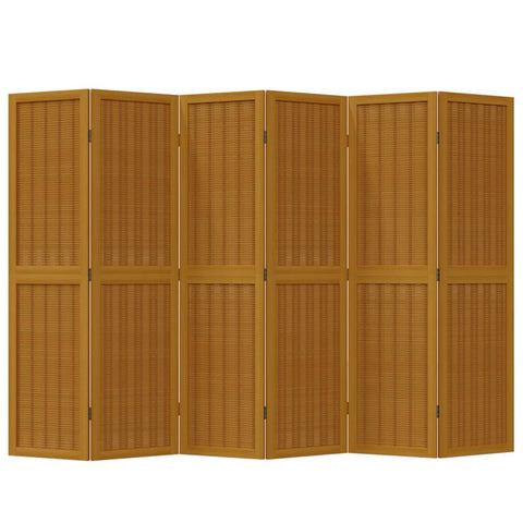 Room Divider 6 Panels Brown Solid Wood Paulownia 358825