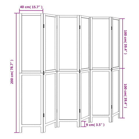 Room Divider 6 Panels Dark Brown Solid Wood Paulownia 358667