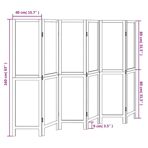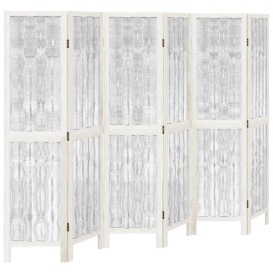 Room Divider 6 Panels White Solid Wood Paulownia 358681