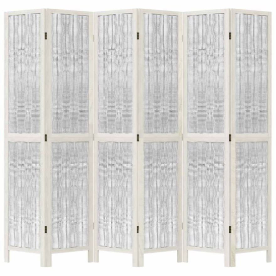 Room Divider 6 Panels White Solid Wood Paulownia 358683