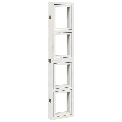Bring elegance and an eye-catching decorative touch to your space with this charming room divider. Durable and easy to clean: The privacy screen is made from solid paulownia wood, making it easy to clean and durable. The solid paulownia wood frame ensures sturdiness and stability. Solid paulownia wood is a beautiful natural material. Paulownia wood is highly resistant to bugs and rotting.Flexible and easy to fold: Each partition is connected by 3 metal hinges and the upper and lower panels are connected by hidden 2-in-1 hinges. So the room divider panel can be easily folded to some extent according to your needs to save space.Attractive design: Each photo frame can be rotated vertically, allowing you to arrange your favourite photos in any position, becoming the highlight of the room.Multipurpose: The room partition is great for creating private space in your bedroom, living room, office and other interiors. You can also place it in front of a window to block intense sunlight. Warning:Only for indoor use. Good to know:Each swivelling frame features an open design and does not come with pre-set decorative pictures and glass. You can personalise it by inserting photos through the opening on the side of the frame to create a unique, customised look.