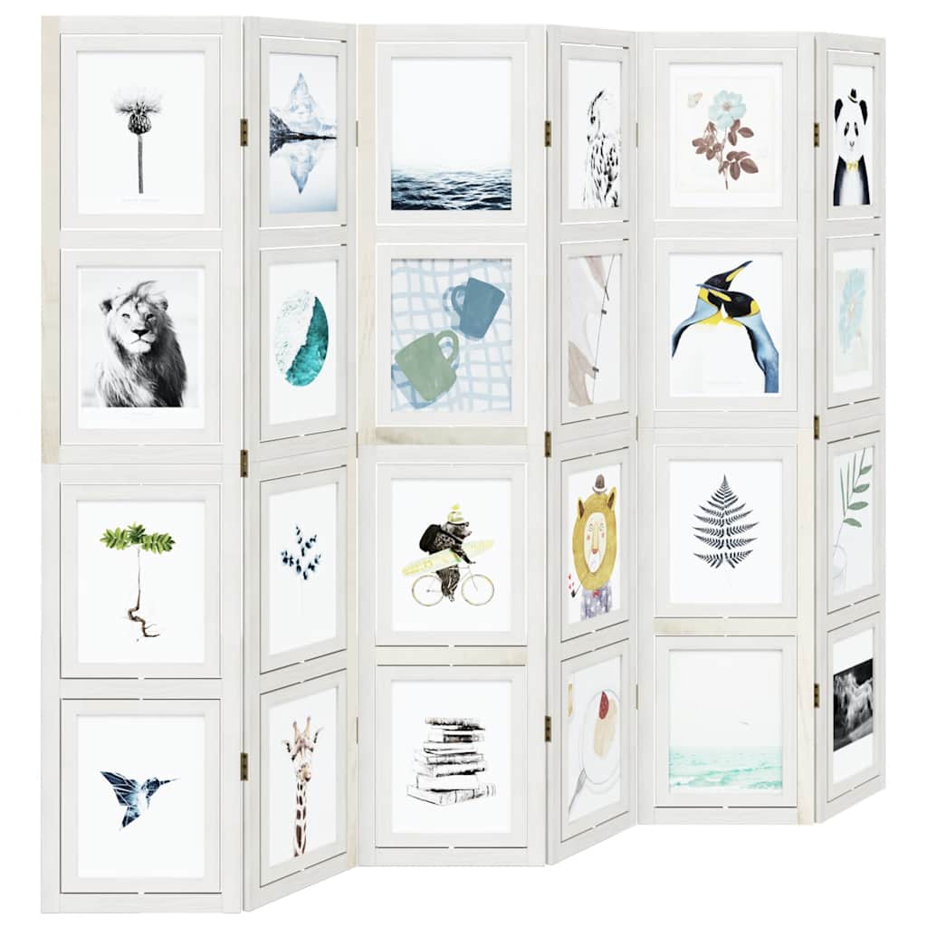 Room Divider 6 Panels White Solid Wood Paulownia 358698