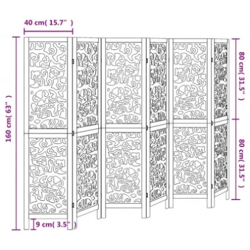 Bring elegance and an eye-catching decorative touch to your space with this charming room divider. Durable and easy to clean: The privacy screen is made from engineered wood, making it easy to clean and durable.Stable frame: The solid paulownia wood frame ensures sturdiness and stability. Solid paulownia wood is a beautiful natural material. Paulownia wood is highly resistant to bugs and rotting.Flexible and easy to fold: Each partition is connected by 3 metal hinges and the upper and lower panels are connected by hidden 2-in-1 hinges. So the room divider panel can be easily folded to some extent according to your needs to save space.Multipurpose: The room partition is great for creating private space in your bedroom, living room, office and other interiors. You can also place it in front of a window to block intense sunlight.Attractive looking: Featuring a delicate openwork looking, this folding room divider adds character and decoration to the space. Warning:Only for indoor use.