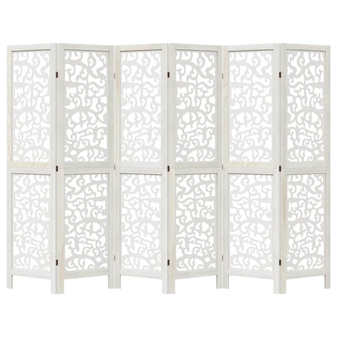 Room Divider 6 Panels White Solid Wood Paulownia 358745